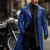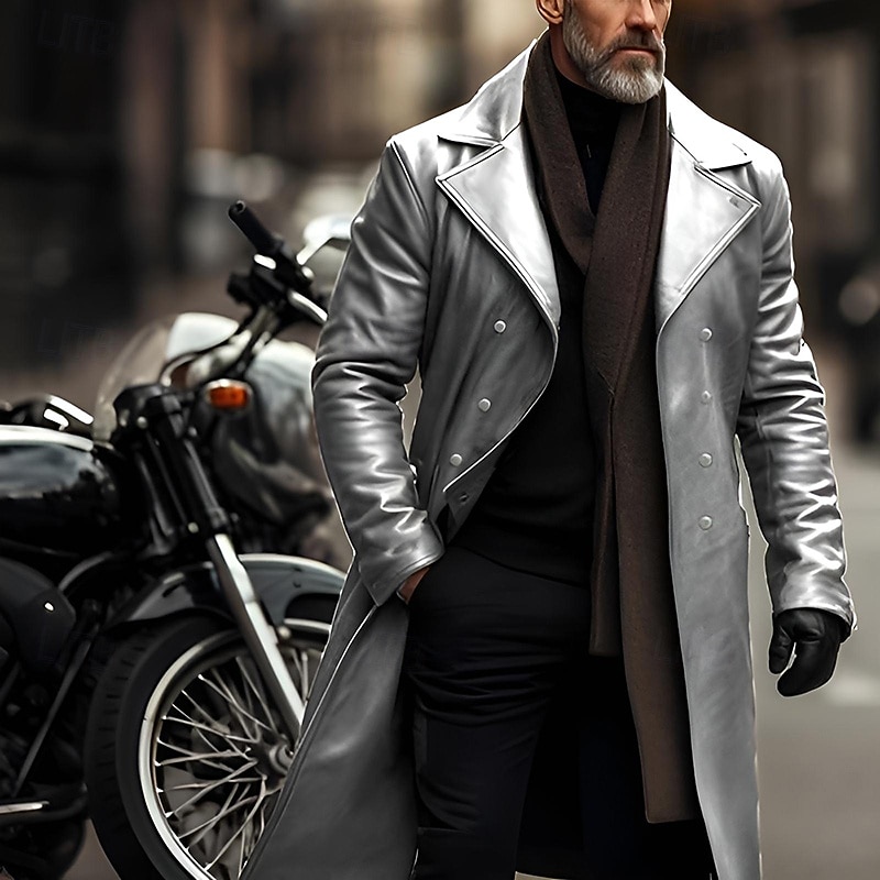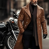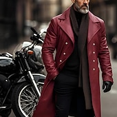 More information about Men's Faux Leather Jacket Transition Jacket Biker Jacket Red Leather Jacket Vacation Daily Windproof Warm Pocket Fall & Winter Plain Fashion Classic Lapel Long Faux Leather Black Silver Wine Blue Gold