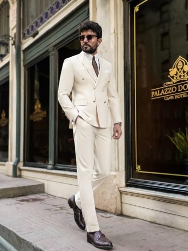 Men Double Breasted 2 Piece Suits Slim Fit Tuxedo for Wedding Prom Dinner Formal Blazer Jacket Pant Set 5