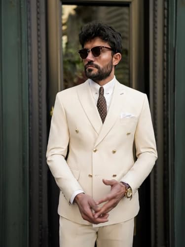 Men Double Breasted 2 Piece Suits Slim Fit Tuxedo for Wedding Prom Dinner Formal Blazer Jacket Pant Set 6