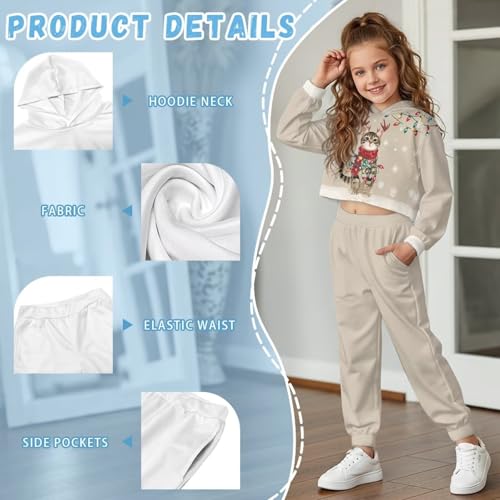 ZFRXIGN Cute Christmas Hoodie and Sweatpants 2 Piece Outfit for Girls 4-13 Years Cropped Hoodie Sweatpants with Pockets 4