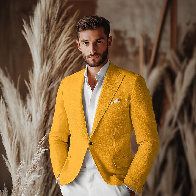 More information about Men's Linen Blazer Sport Coat Notch Collar Fashion Casual Solid Colored Yellow Orange Beige Standard Fit Single Breasted One-button