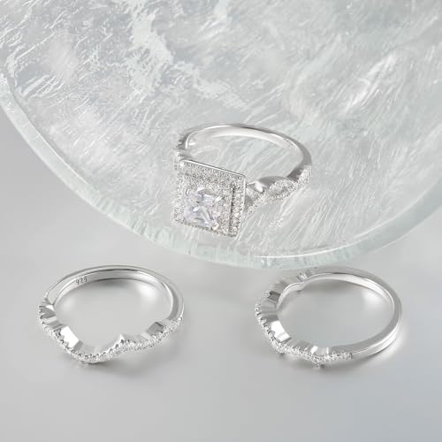 1ct Princess Cut Cubic Zirconia Engagement Ring for Women, Sterling Silver Wedding Band Set with Rhodium Plating, Size 6-11, Hypoallergenic, Gift for Her (Anniversary, Proposal, Valentine’s Day)