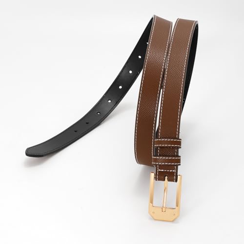 • Skinny Black Belt Gold Buckle: Available in classic colors including black, brown, coffee and white, this thin belt for women effortlessly complements any outfit. This women thin belt's understated elegance makes it great for pairing with dresses, skirts, pants, or jeans. Whether you're accessorizing for a chic office ensemble or enhancing a casual day look, the versatile color selection ensures you'll always find a right match.
