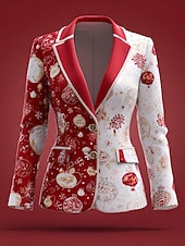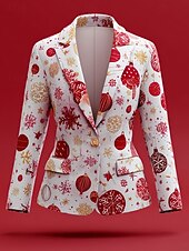 More information about Women's Blazer Windproof Comfortable Buttons Christmas Elegant Active Fashion Solid Color Formal Christmas Anniversary Single Breasted Regular Notch Lapel Loose Fit Long Sleeve Outerwear White Dark