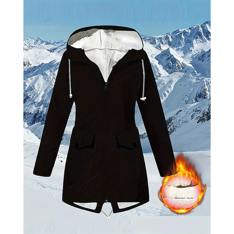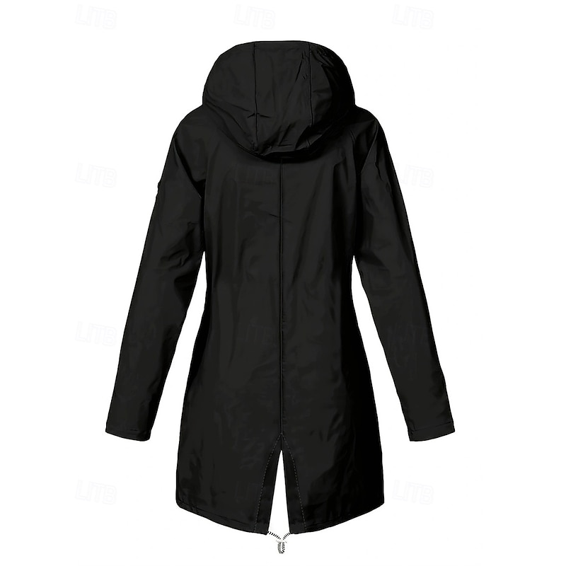 More information about Women's Casual Jacket Waterproof Rain Jackets Rain Coats Waterproof Windproof Zipper Pocket Fashion Outdoor Plain Going out Weekend Zipper Regular Hooded Regular Fit Long Sleeve Outerwear Black Pink