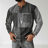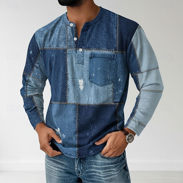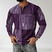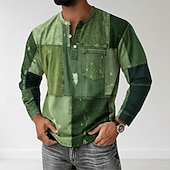 More information about Men's Patchwork Henley Shirt T shirt Tee Long Sleeve Retro Vintage Casual Casual Spring Fall All Seasons Blue Green Purple Gray Henley Henley T-Shirt