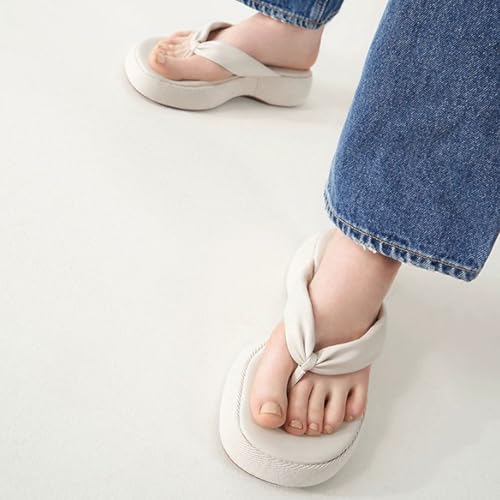 More information about Women's Leather Platform Wedge Flip Flops With Arch Support Comfort Round Open Toe Slip On Thong Sandals Summer Casual Beach Vacation walking Slippers