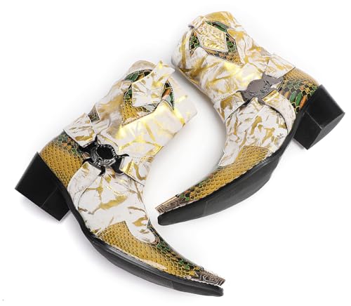 More information about Santimon Men's Dress Casual Cowboy Boots - Genuine Leather Western Boots with Buckle Chain & Metal Wingtip Toe for Wedding, Party Disco & Motorcycle
