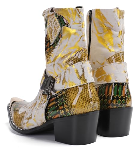 Santimon Men's Dress Casual Cowboy Boots - Genuine Leather Western Boots with Buckle Chain & Metal Wingtip Toe for Wedding, Party Disco & Motorcycle 5