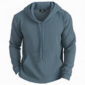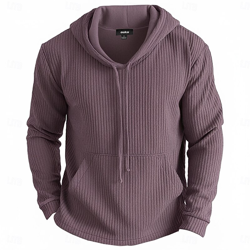 More information about Men's Hoodie Pullover Hoodie Sweatshirt Ribbed Knit Army Green Blue Purple Light Grey Hooded Plain Patchwork Color Block Sports & Outdoor Casual Daily Streetwear Cool Sportswear Spring & Fall All