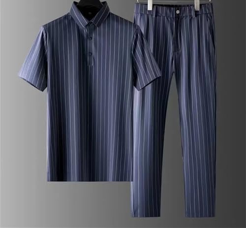 Men Short-Sleeve Thin Stripe Shirt + Trousers Two-Piece Suit Mens Short Sets Business Casual Outfits 4
