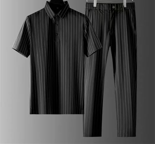 Men Short-Sleeve Thin Stripe Shirt + Trousers Two-Piece Suit Mens Short Sets Business Casual Outfits 2