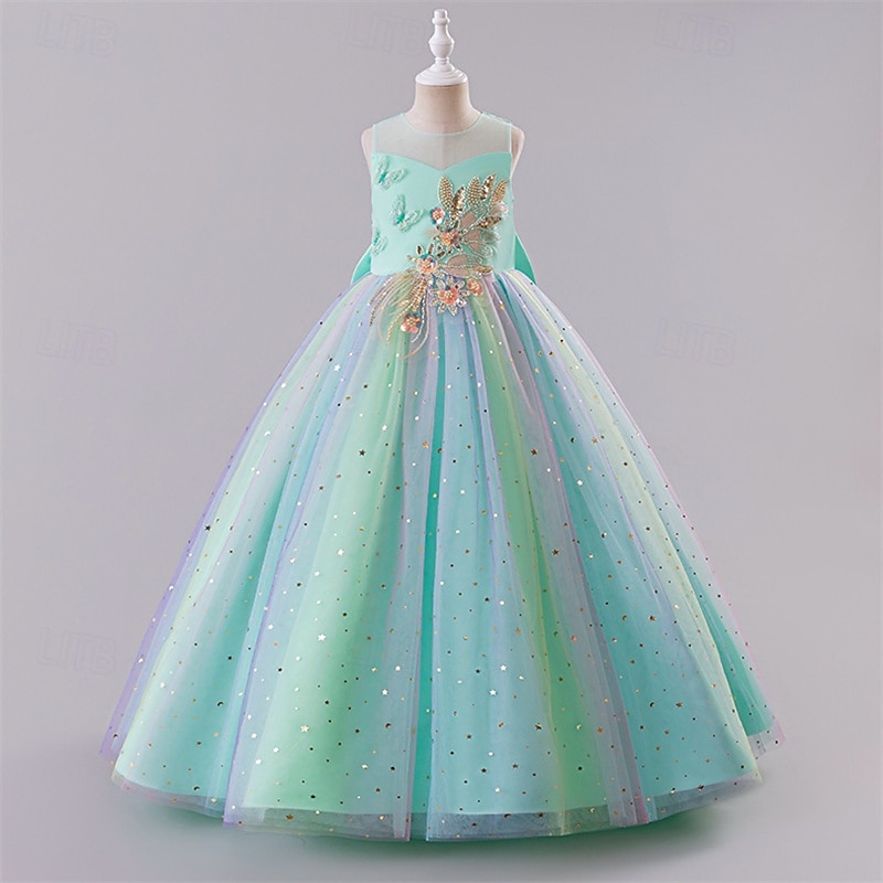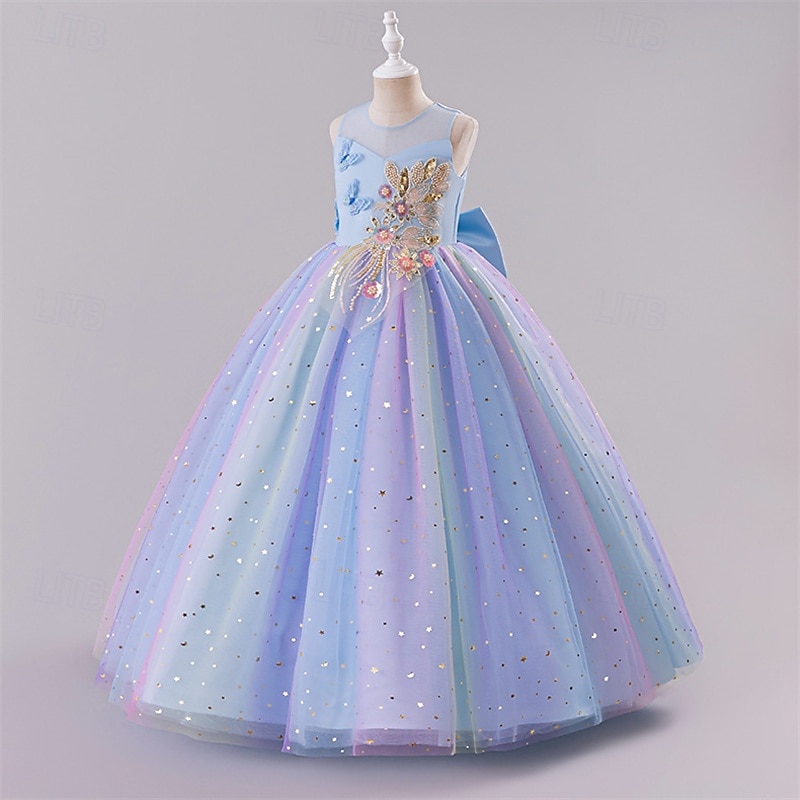 More information about Flower Girl Dress Kid's Girls' Princess Dress Performance Wedding Party Elegant Beautiful Mesh Rainbow Sleeveless Crew Neck Pink Blue 4 years+