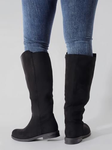 Shoe'N Tale Wide Calf Knee High Boots for Women Flat Low Heel Width Stretchy Round Toe with Side Zipper Fall and Winter Fashion Comfortable 6