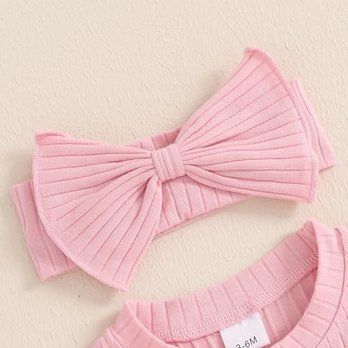 Newborn Baby Girl Fall Outfits Long Sleeve Ribbed Romper Jumpsuit with Headband Set Infant Girl Clothes 6