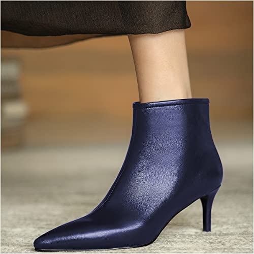 More information about LEMUTISME Women's Stylish Pointed Toe Middle Seam Zip Up Low Kitten Heel Dressy Ankle Booties For Office Party Evening