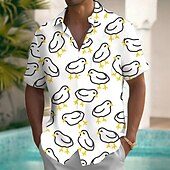 HOT ! Men's Animal Chick Funny Shirt Summer Hawaiian Shirt Button Up Shirt Short Sleeve Hawaiian Vacation Holiday Beach Wear Summer Spring Turndown 3D Print Collared Shirts Front One Pocket White