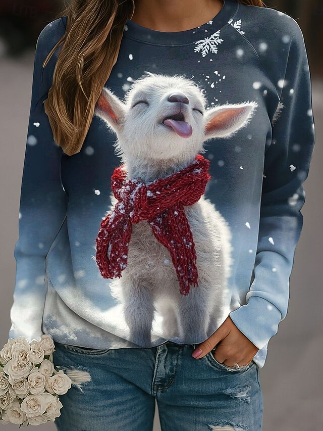 HOT ! Women's Pullover Graphic Animal Casual Long Sleeve Crew Neck Regular Tops Casual Yellow Pink Blue Green Spring Fall Winter
