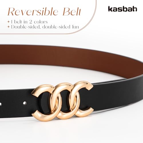KASBAH Reversible Belts for Women Two-in-One Ladies Belt With Gold Buckle Womens Belts For Jeans Pants Dresses 3