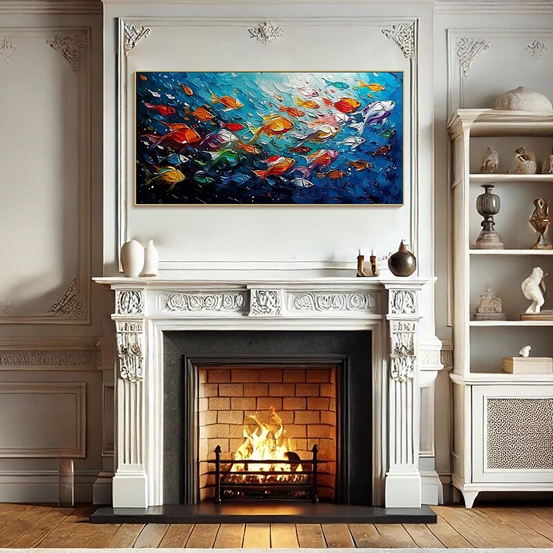 $131.99 - Handmade Original Colorful Fish Oil Painting On Canvas Abstract Fish School Wall Art for Home Decor With Stretched Frame Without Inner Frame Painting 2025. Shop for cheap Animal Paintings online? Buy at lightinthebox.com on sale today!