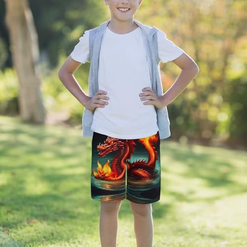 Dragon King in Fire Youth Beach Pants, Soft and Breathable, with Drawstring Waist, Suitable for Sports and Leisure. 2