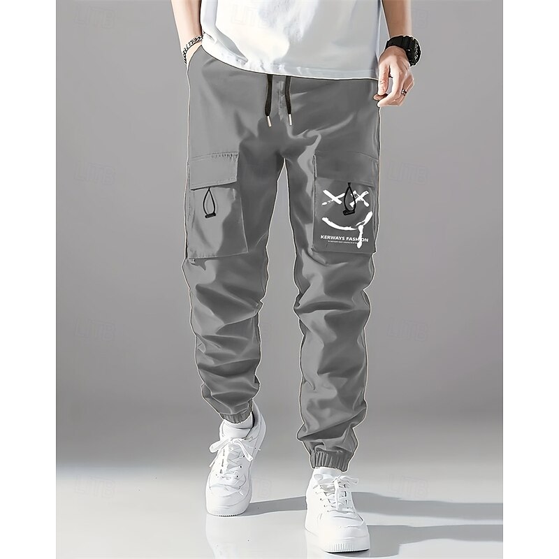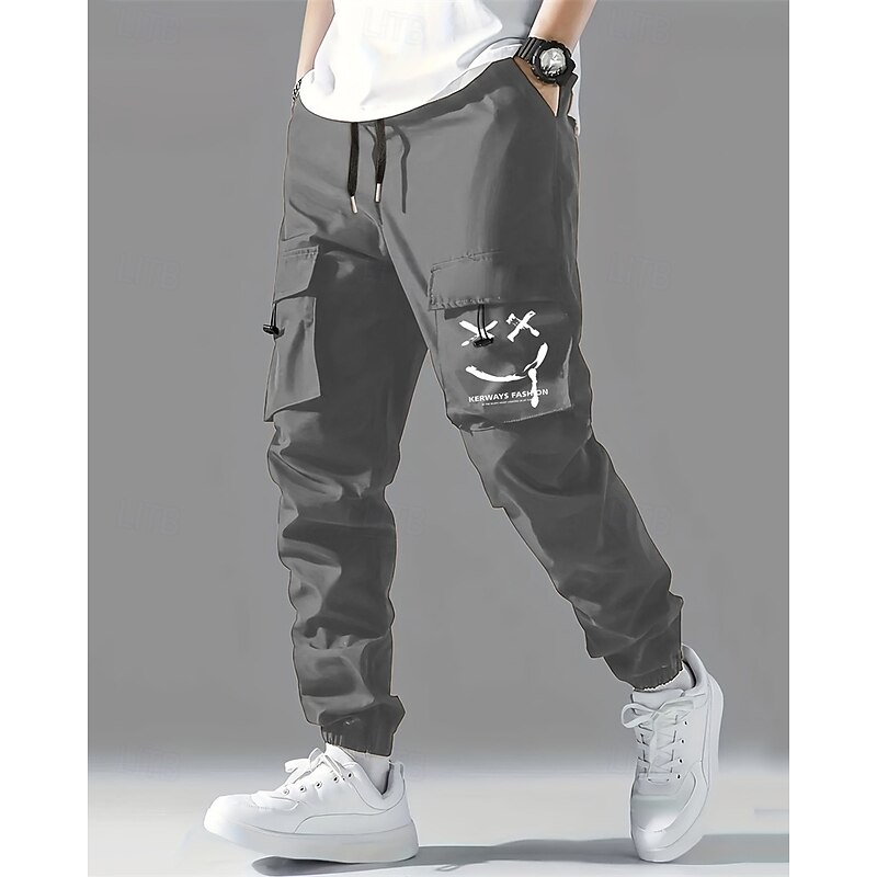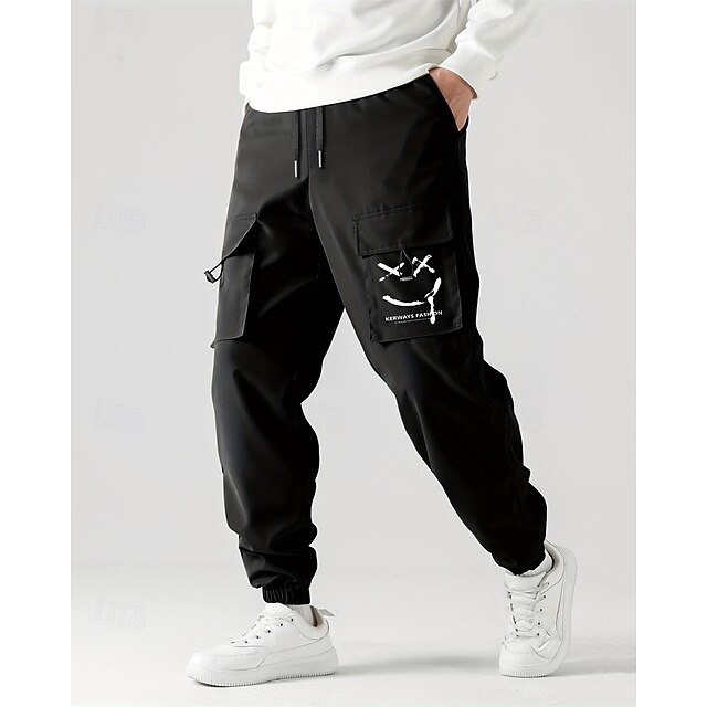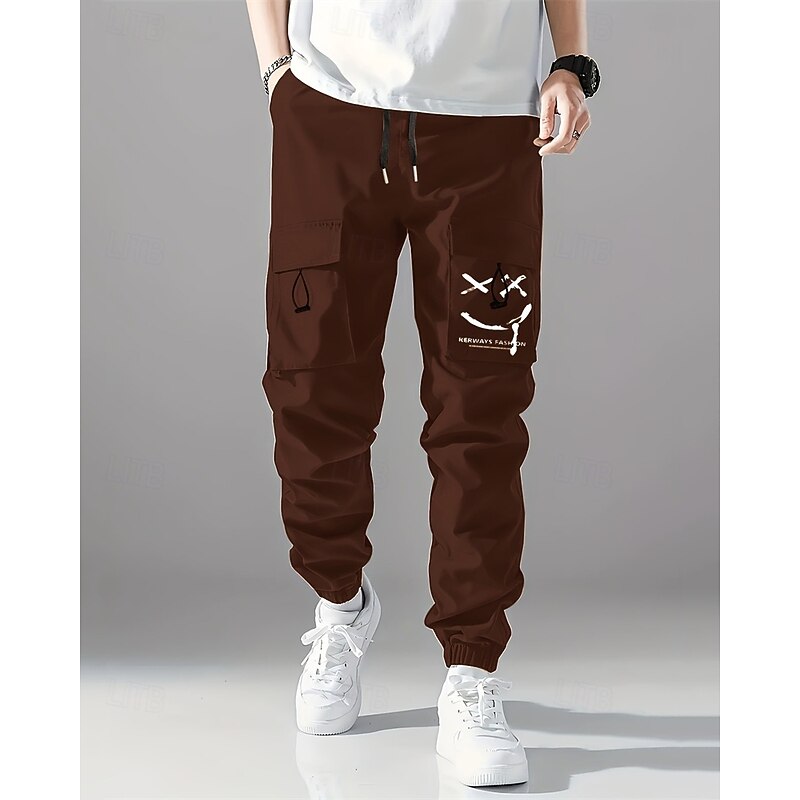 HOT ! Men's Cargo Pants Joggers Trousers Elastic Waist Drawstring Multi Pocket Smile Face Wearable Outdoor Daily Camping & Hiking Fashion Classic Black Wine