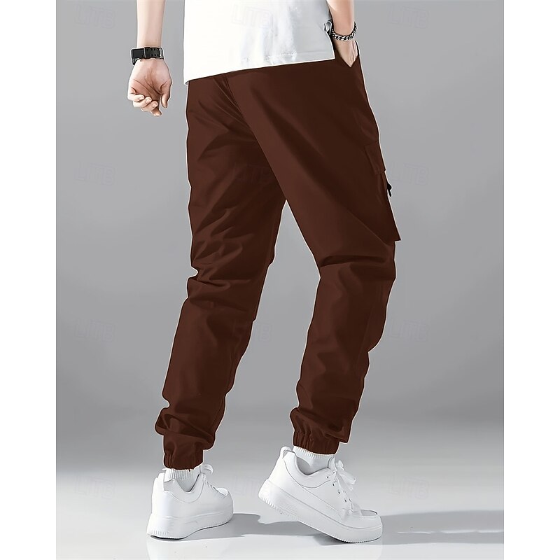 Men's Cargo Pants Joggers Trousers Elastic Waist Drawstring Multi Pocket Smile Face Wearable Outdoor Daily Camping & Hiking Fashion Classic Black Wine 12