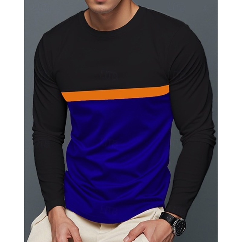 More information about Men's T Shirt Tee Tee Top Long Sleeve Shirt Long Sleeve Crew Neck Spring Fall Color Block Fashion Designer Basic Patchwork Vacation Street Going out Black Yellow Red Top Tee for Men