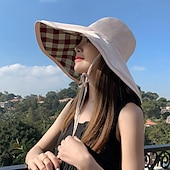 More information about Women's Hat Bucket Hat Sun Hat Portable Sun Protection Outdoor Street Weekend Pure Color Plaid Pure Color