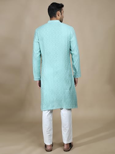 Filori Studio - Men's Cotton Viscose Self Woven Design Long Kurta with Embroidery (Kurta Only) 6