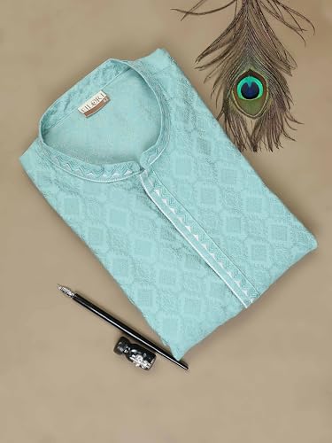 HOT ! Filori Studio - Men's Cotton Viscose Self Woven Design Long Kurta with Embroidery (Kurta Only)