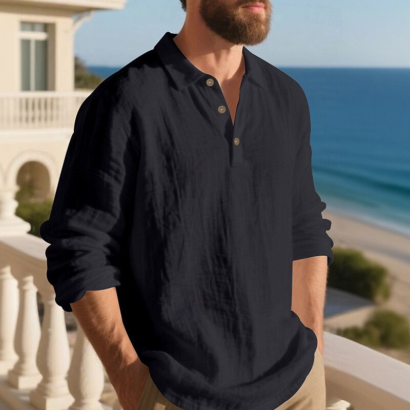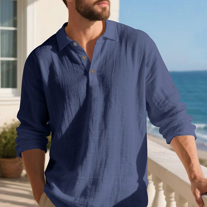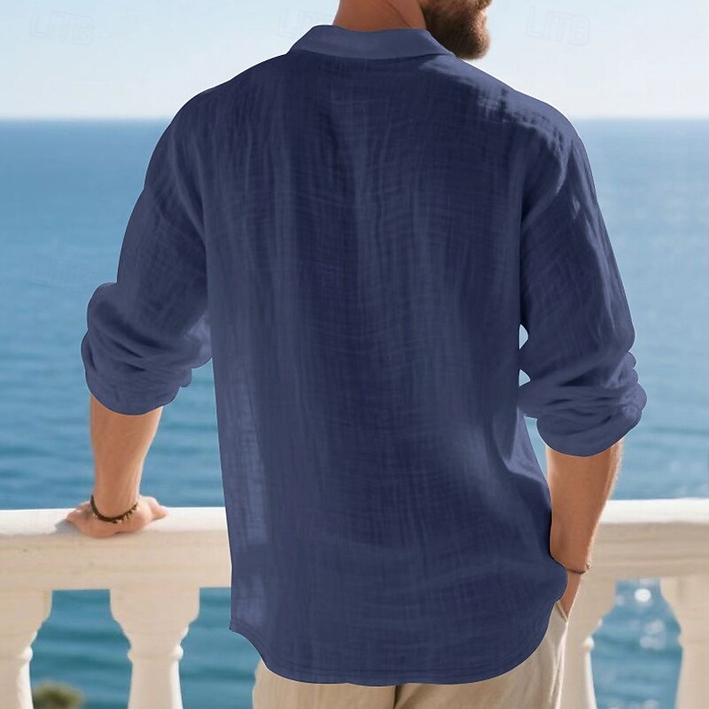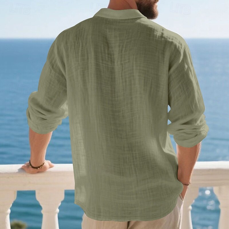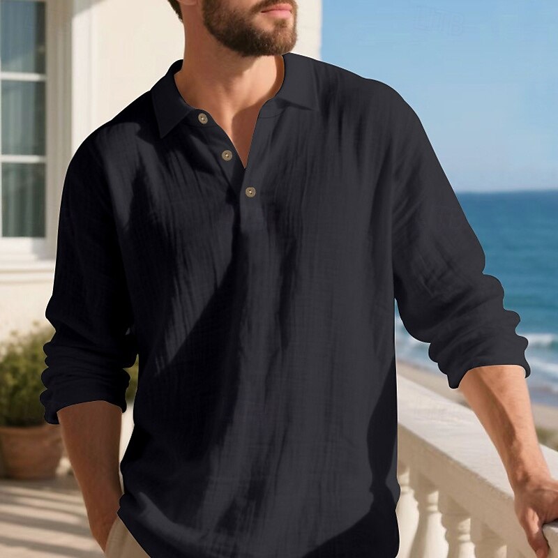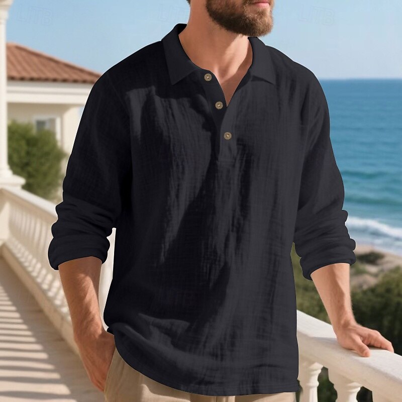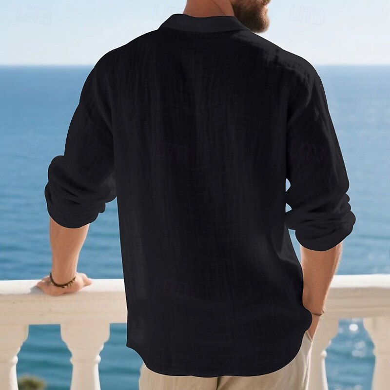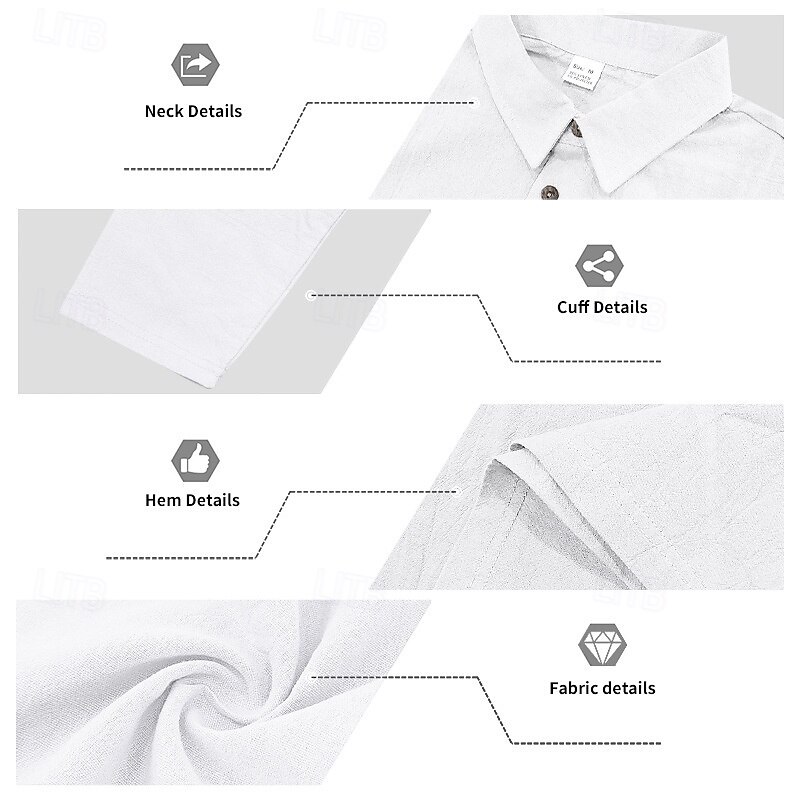 Highlights - Perfect for Spring and Fall seasons - Classic long sleeve design for men - Stylish and basic linen shirt - Suitable for work occasions - Features button details and lapel neckline
