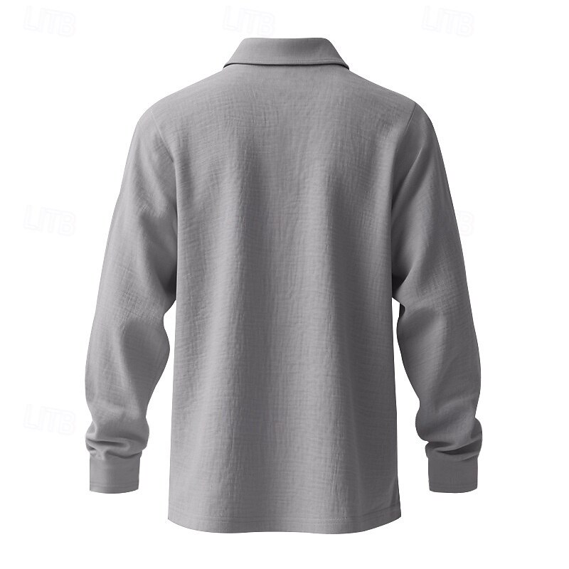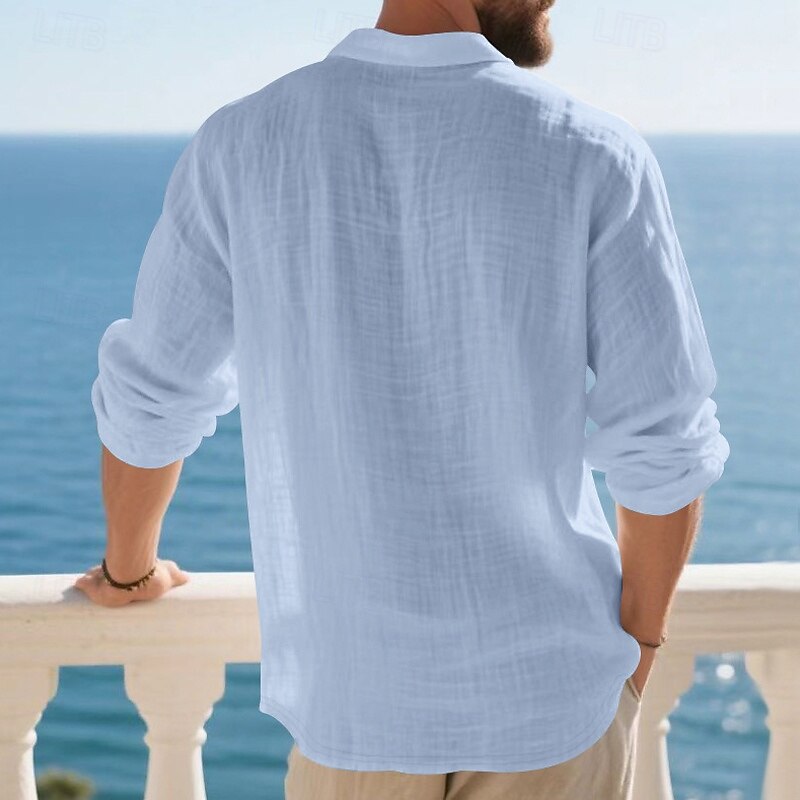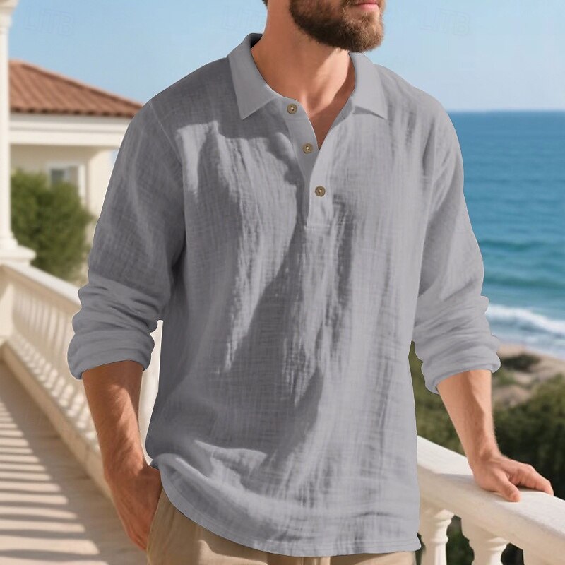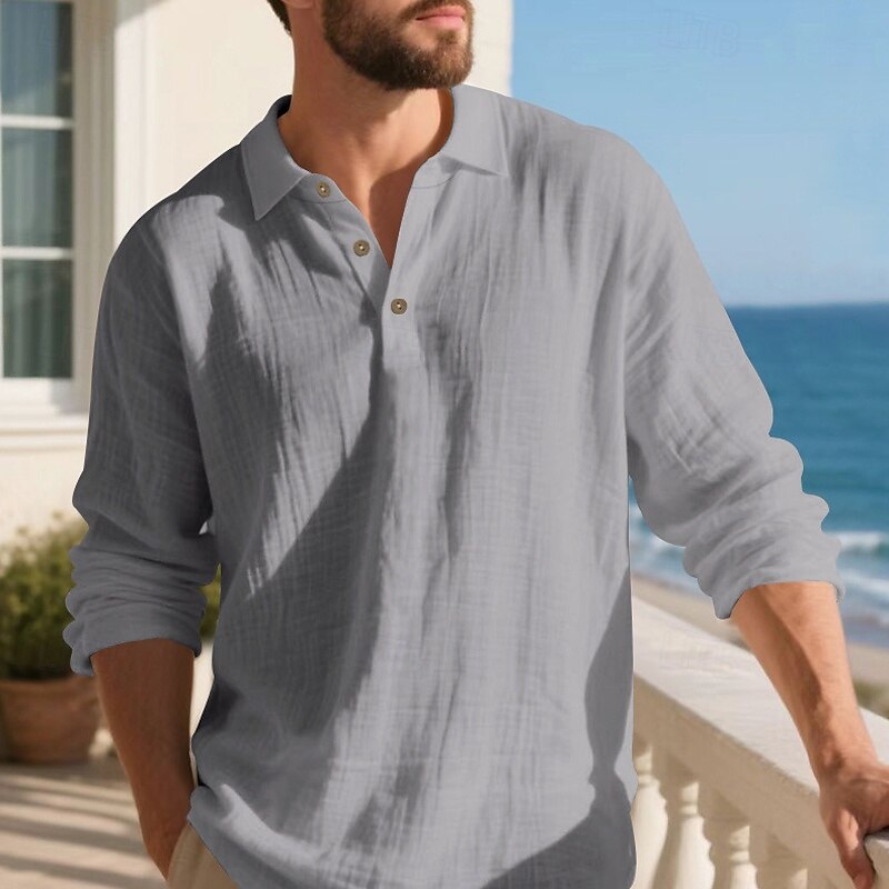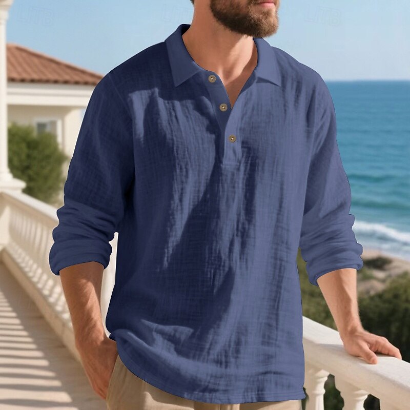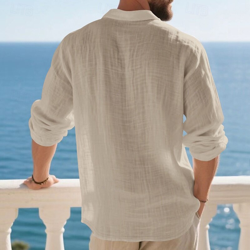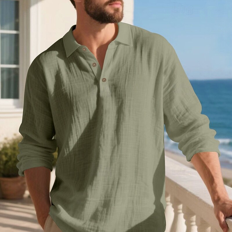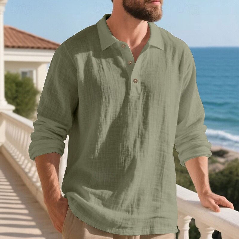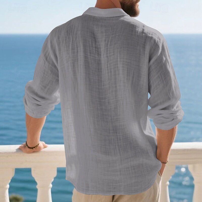 Highlights - Perfect for Spring and Fall seasons - Classic long sleeve design for men - Stylish and basic linen shirt - Suitable for work occasions - Features button details and lapel neckline
