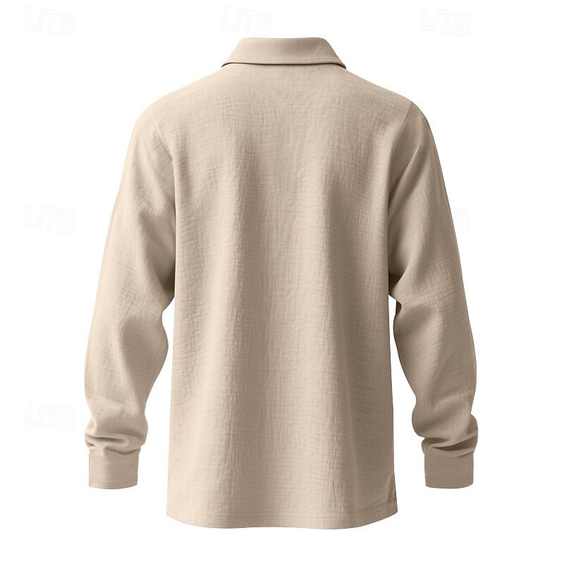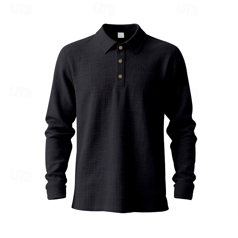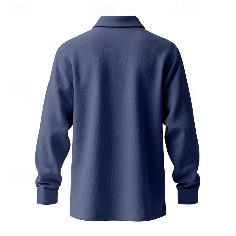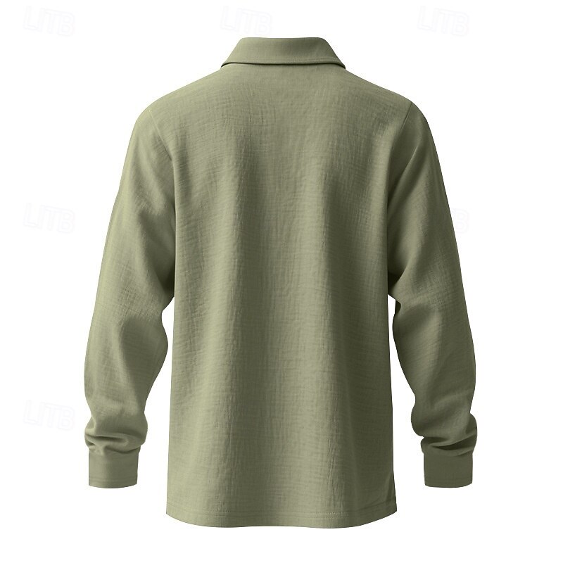 More information about Men's Linen Shirt Golf Shirt Work Casual Lapel Long Sleeve Basic Modern Plain Buttons Spring Fall Regular Fit Black White Navy Blue Khaki Army Green Light Blue Linen Shirt