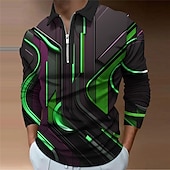 Men's Graphic Zip Polo Shirts Golf Shirt Long Sleeve Polo Shirts Collared Shirts Casual Vacation Wear Rave Wear Party Outfits 3D Print Quarter Zip Polo Fall & Winter Red Green 3