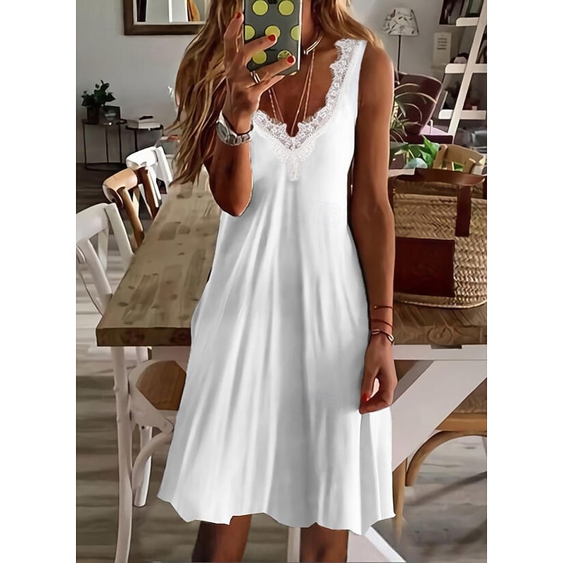 trending ! Women's EU / US Size Mini Dress Casual Dress Beach Dress Elegant Dress Elegant Bohemia Vacation Sleeveless Vacation Casual Beach Form Fit Solid Color Leaf Sleeveless V Neck White Light Green Green