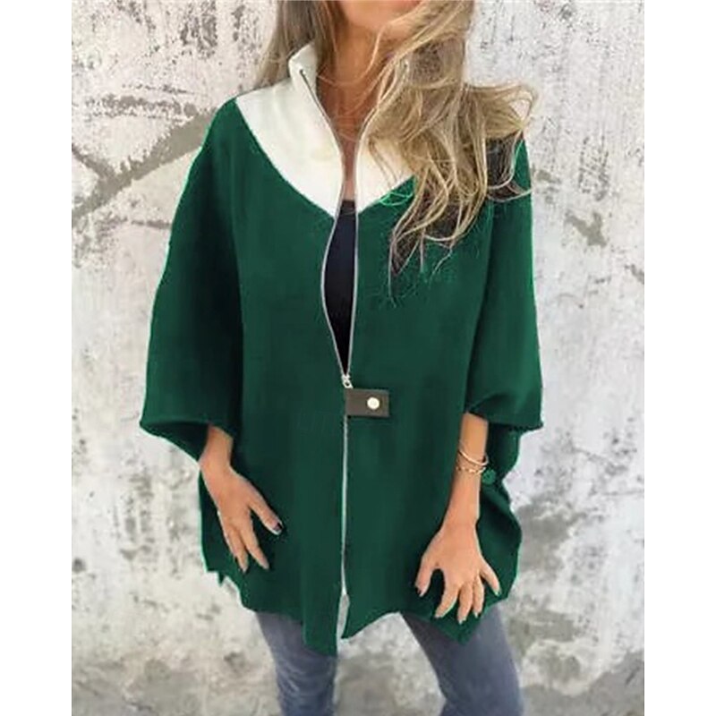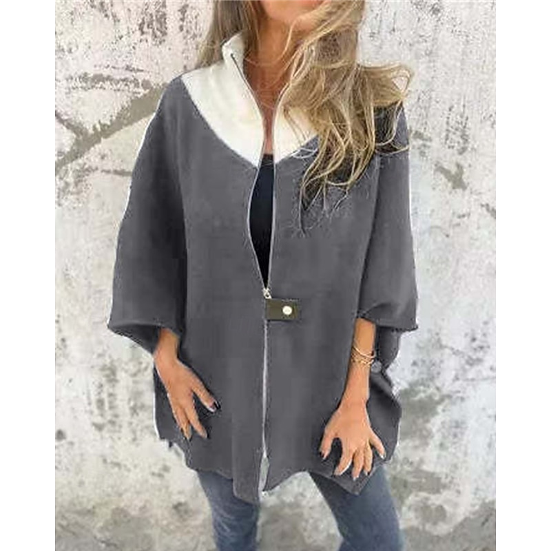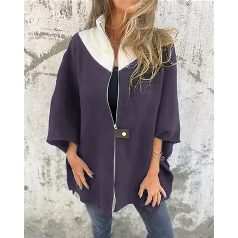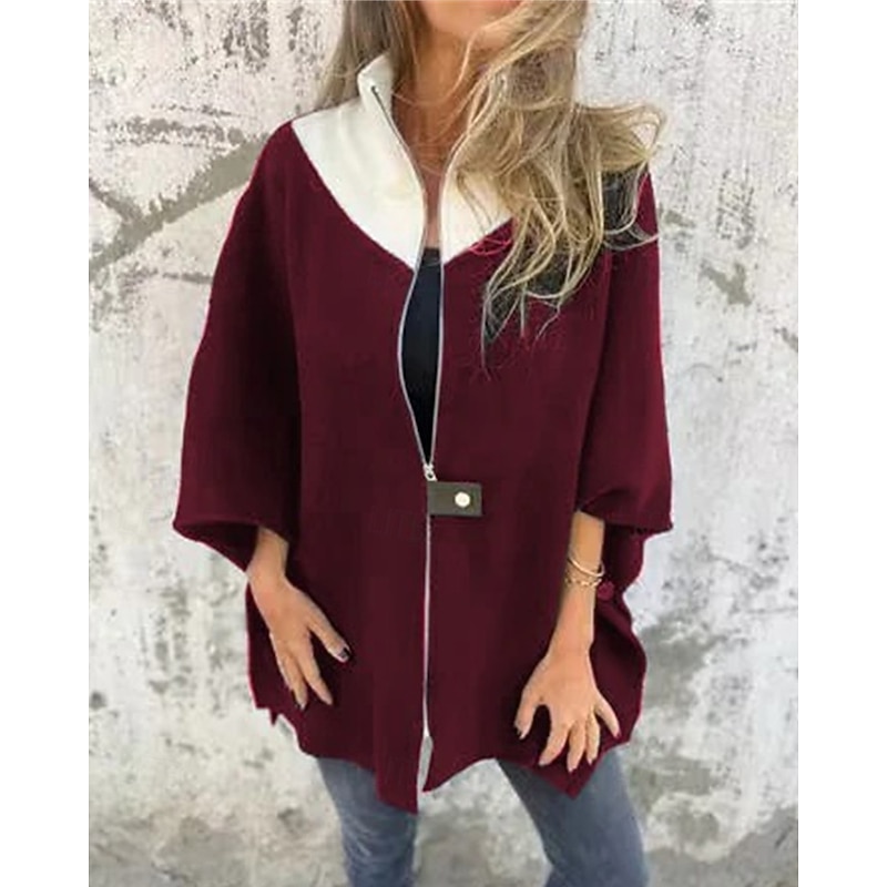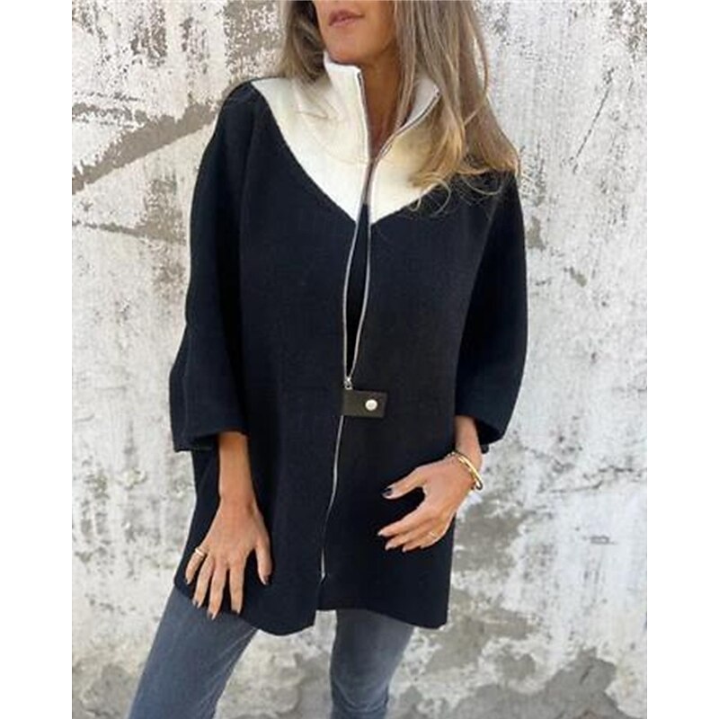 HOT ! Women's Coat Casual Jacket Warm Comfortable Patchwork Zipper Fashion Modern Casual Color Block Going out Weekend Zipper Regular Stand Collar Regular Fit 3/4 Length Sleeve Outerwear Black White Red