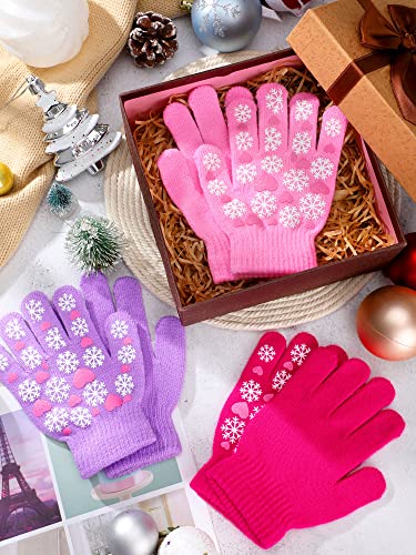 Geyoga 3 Pair Winter Warm Gloves Kids Toddler Winter Full Finger Knit Gloves for Kids Children Girls Aged 5-10 Year 6
