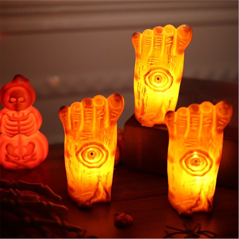 HOT ! 3 Pcs Halloween Candle Lights Broken Feet with Blood Eye LED Electronic Candle Light Indoor Restaurant Halloween Festival Party Horror Atmosphere Decorative Light