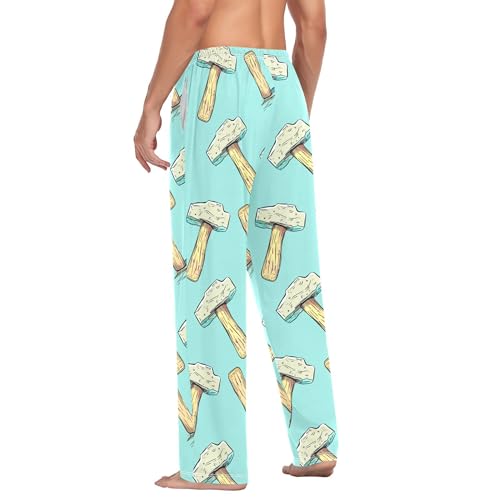 Men's Pajama Bottom Hammer Pattern Design Cotton Pajama Pants Drawstring Sleepwear Long Pants Pockets