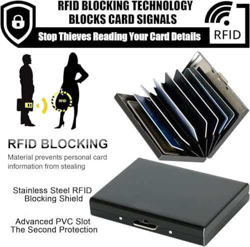• Safety, Privacy and Security. Our RFID blocking pop up credit card holder wallet can perfectly block unwanted RFID scanners, includes RFID blocking technology to prevent unauthorized access to personal information, Protect your RFID Credit Cards, Debit Cards, ID Cards from electronic pick pocketing. It is very secure and is perfect for travel.
