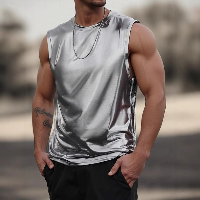 More information about Men's Tank Top Sleeveless Crew Neck Summer Plain Punk Fashion Designer Outdoor Casual Fitness Silver Gold Top Tee for Men