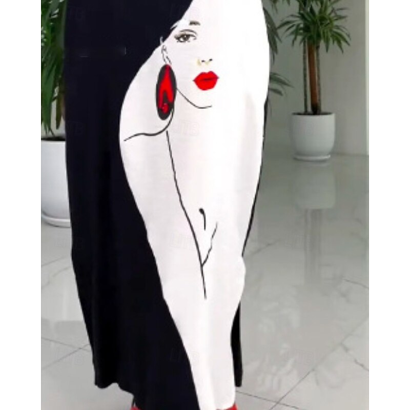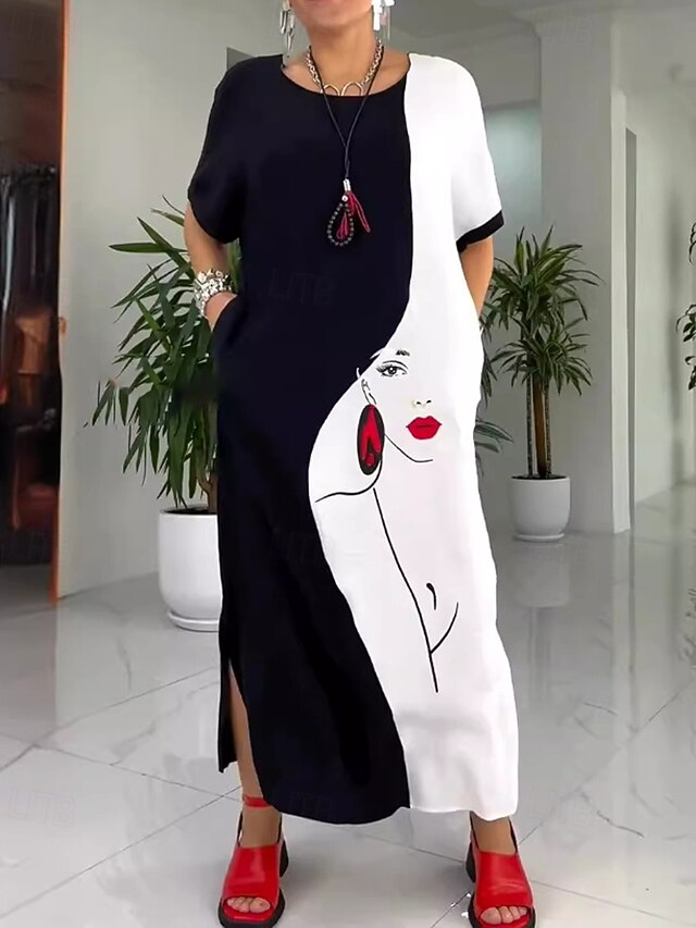More information about Women's Long Dress Maxi Dress Casual Dress Print Dress Classic Modern Outdoor Vacation Going out Regular Fit Color Block Short Sleeve Crew Neck Black And White Fall