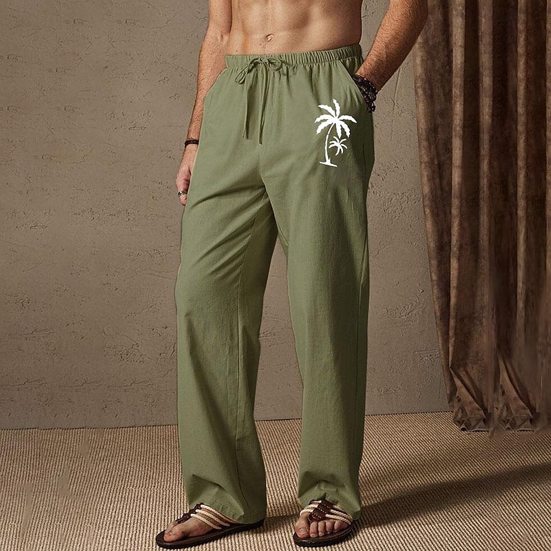 Highlights [Fabric] : Crafted from 100% cotton, these men's summer pants are designed for breathability and comfort, making them perfect for warm weather and relaxed settings. The lightweight fabric ensures easy movement, whether you're at the beach or lounging at home. [Fit] : These pants offer a regular fit with a straight leg design, embodying a laid-back and comfortable style. The micro-elasticity of the fabric enhances ease of movement, while the elastic waistband and drawstring provide an adjustable, mid-waist fit for optimal comfort throughout the day. [Design Highlights] : Featuring a subtle palm and coconut tree pattern on one side, these pants add a touch of tropical flair to their minimalist appeal. The elastic waistband adds ease and functionality, and the overall design supports a relaxed and casual lifestyle. [Occasions] : Ideal for outdoor adventures, streetwear fashion, or vacation settings, these pants are versatile enough for beach outings or casual gatherings. Their Hawaiian and holiday style makes them suitable for a variety of laid-back events. [Size Range] : These pants are available in a range of sizes from S to 3XL, ensuring a comfortable fit for various body types. Choose the size that best suits your needs for a perfect fit every time.