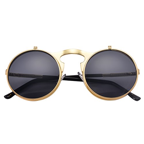 COASION Vintage Round Flip Up Sunglasses for Men Women Juniors Circle Steampunk Costume Glasses 1