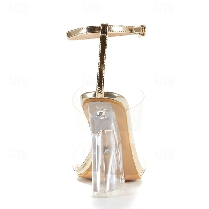 More information about Women's Clear Wedge Heels with Transparent Straps and Gold Ankle Buckle, Modern High Heel Sandals for Party and Evening Wear