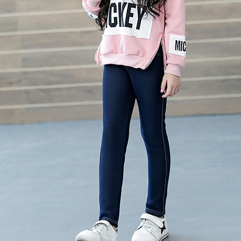 HOT ! Kids Girls' Trousers Solid Color Fashion Pocket Outdoor 7-13 Years Fall Black Dark Blue
