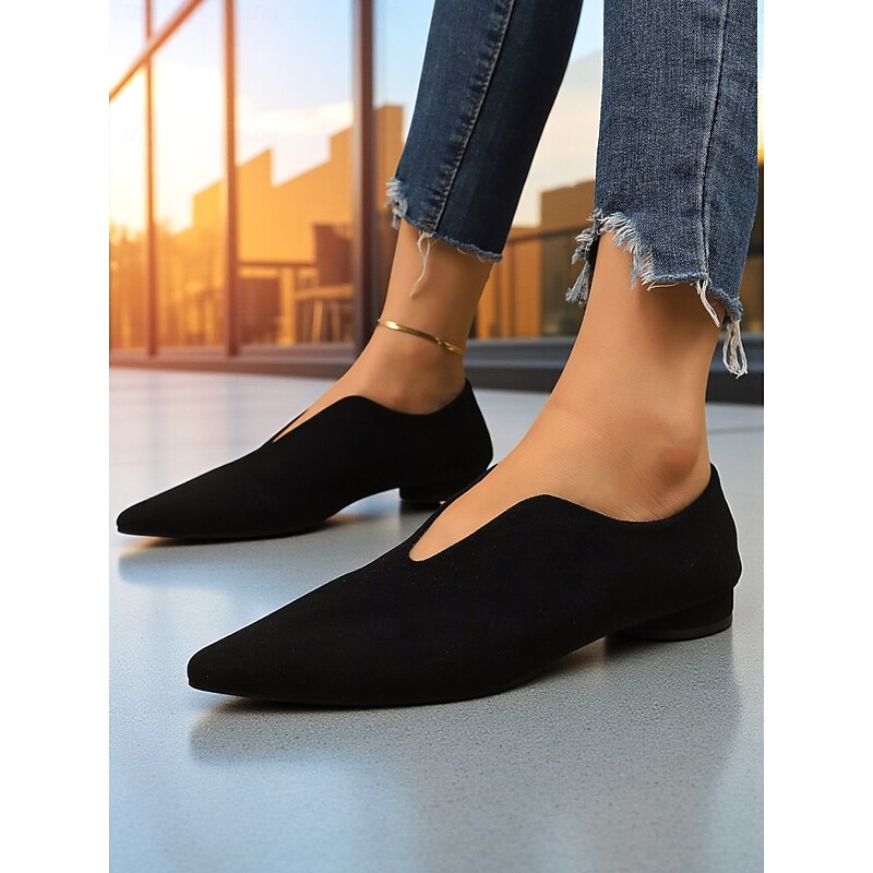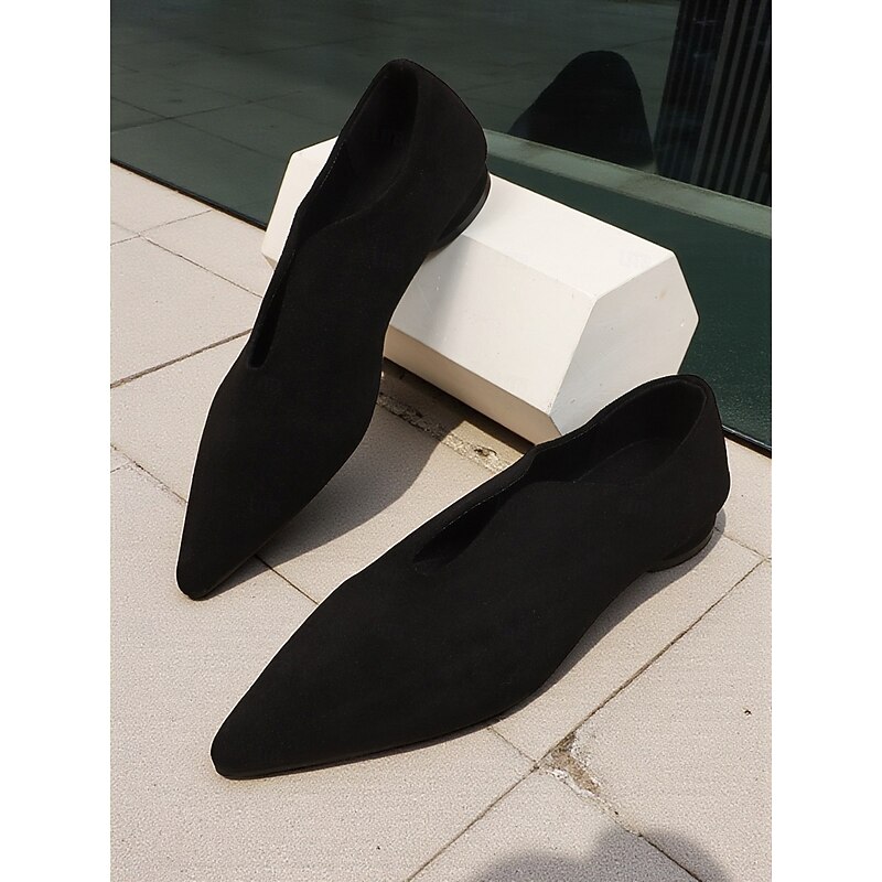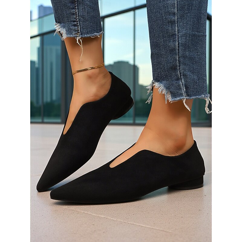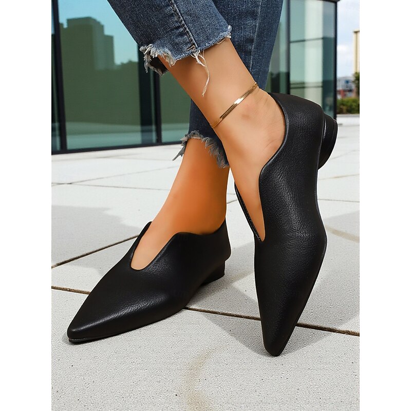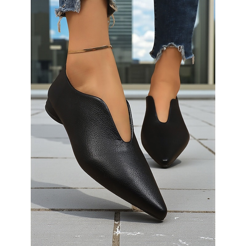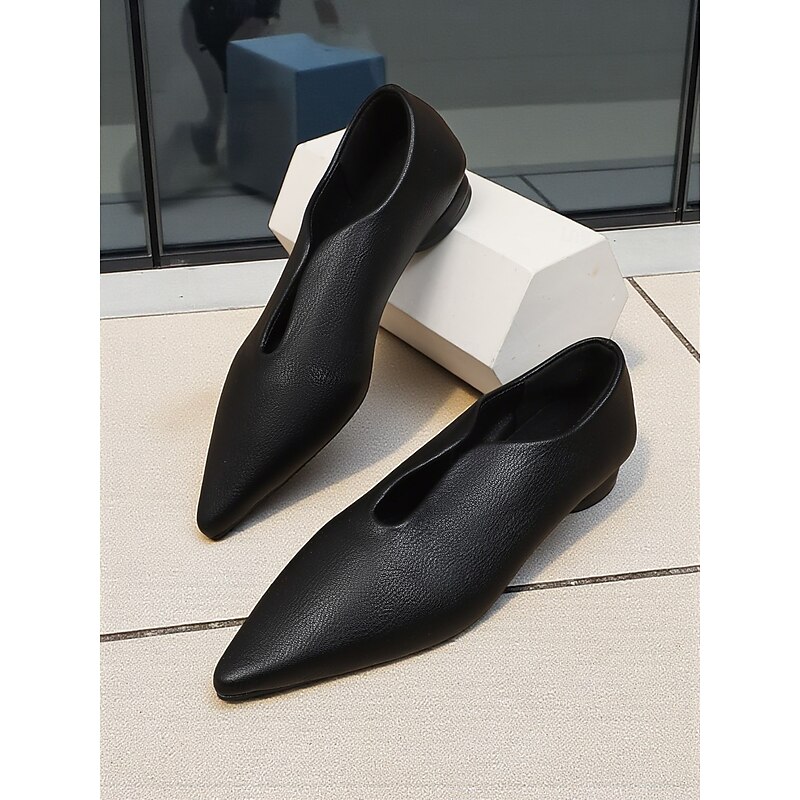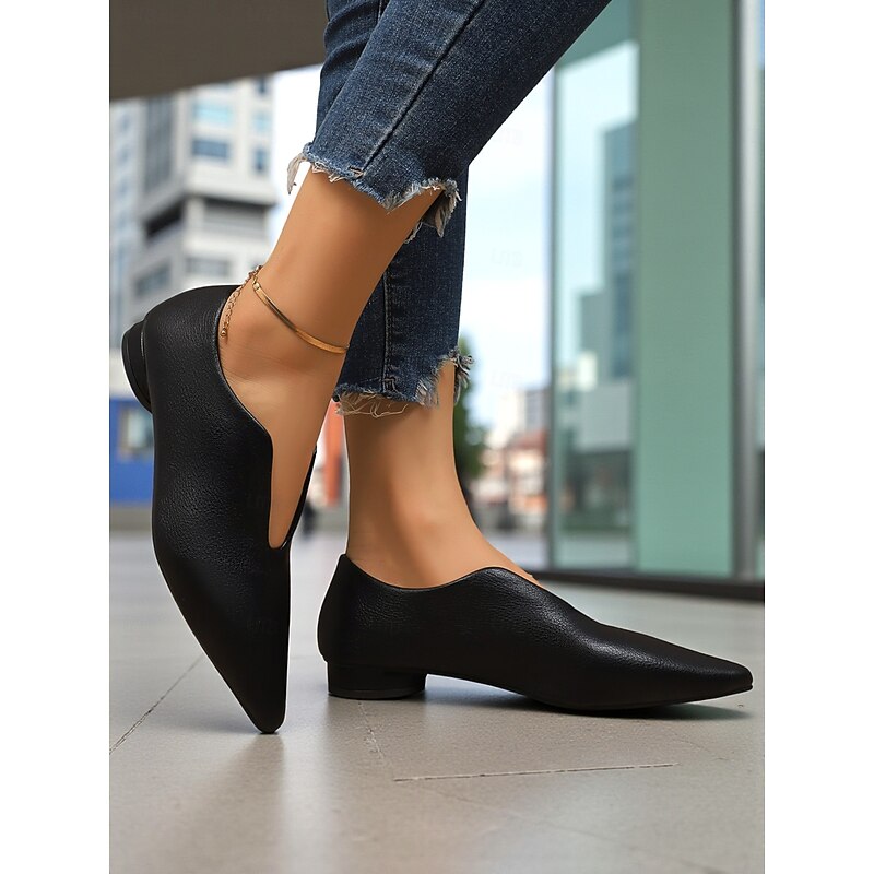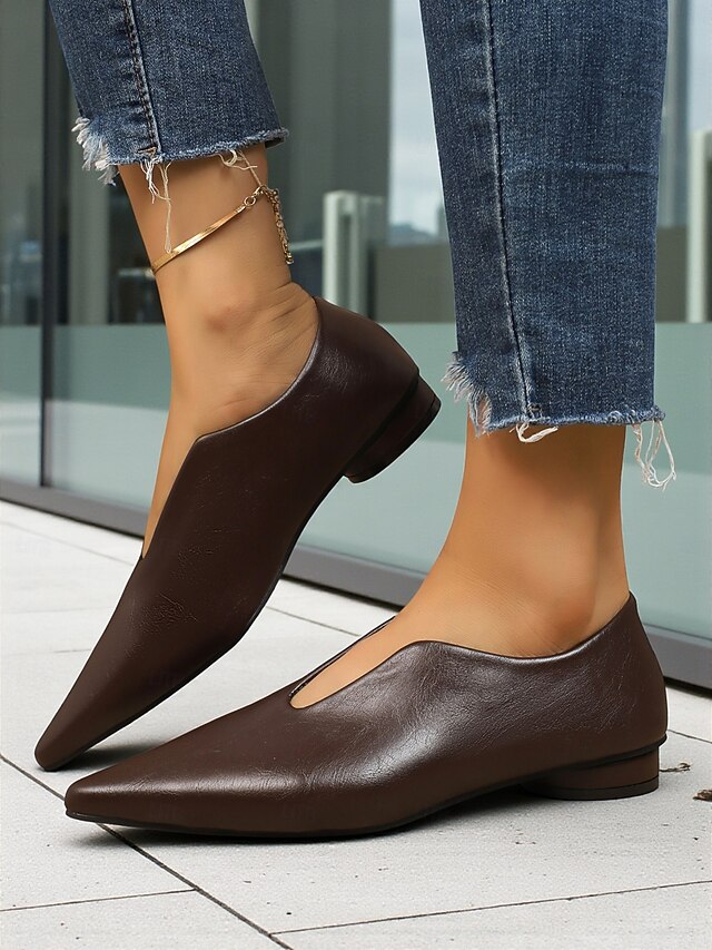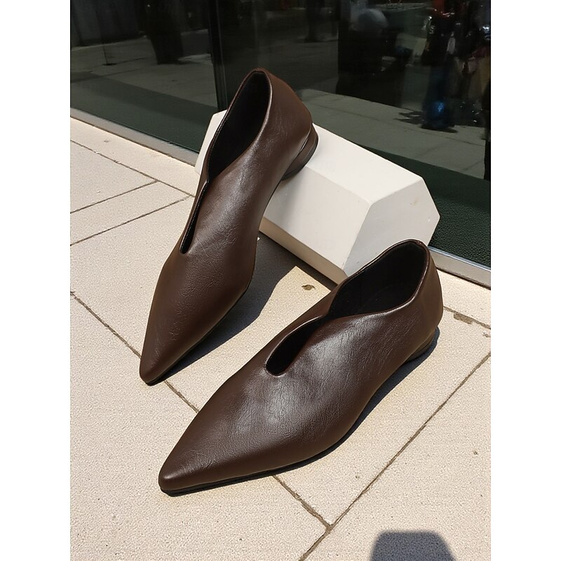 HOT ! Women's Brown Faux Leather Pointed Toe Flats – Minimalist V-Cut Slip-On Loafers, Elegant Business Casual and Everyday Office Wear