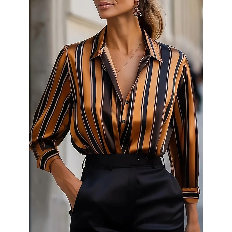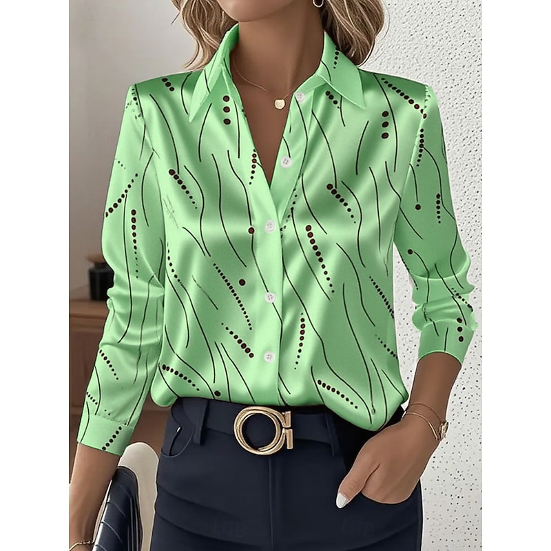 More information about Women's Shirt Dressy Tops Formal Work Shirt Graphic Geometric Elegant Stylish Casual Long Sleeve Collar Party Evening Wear Daily Glitter White Pink Blue Orange Green Spring Fall Winter