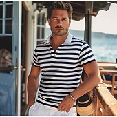 $26.99 - Men's Shirt Striped Horizontal Stripes Casual Cable Knit Polo Short Sleeve Outdoor Causal Casual Summer Print Turndown Black Blue Micro-elastic 48% cotton, 48% polyester, 4% spandex 2025. Shop for cheap Men's Elite Shirts online? Buy at lightinthebox.com on sale today!